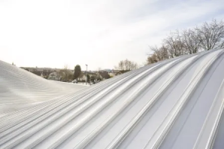 The key to the standing seam system lies in its innovative design. The profiles are self-supporting and are installed without mechanical penetrating of the surface with halters made out of GFRP, Aluminum or Stainless Steel, which are available in various heights to accommodate f. e. different insulation thicknesses. Thanks to the variable profile lengths of the standing seam covering, overlaps are eliminated, and permanently welded connections provide continuous sealing. The BEMO system allows for flexible adaptation to virtually any building shape.